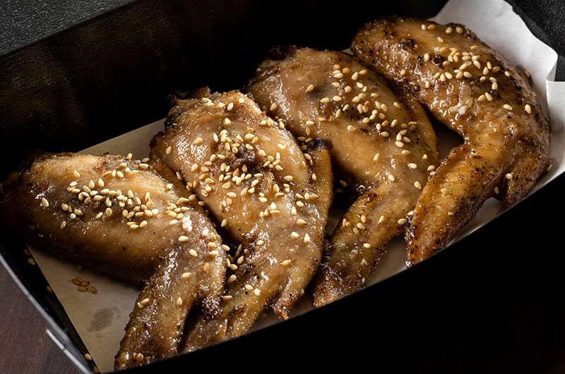 夢の蔵の料理は、オリジナリティ溢れるメニューが特徴!辛さが選べる辛ちゃん麺や1ポンドステーキ、伊勢海老のお造り、フルーツ盛りなど、通常の居酒屋にはない遊び心溢れる個性メニュー盛りだくさんです。また、餃子や手羽先はお持ち帰りもOK。自慢の味をご家庭でご堪能ください。
